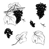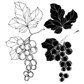 Wektor Jagoda winogronowa zdrowe jedzenie. Czarno-biała grawerowana sztuka tuszu. Izolowany element ilustracji winogron.