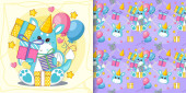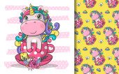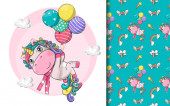 ręcznie rysowane cute smoka i balony z wzorem zestaw