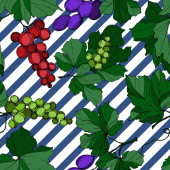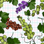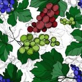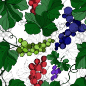 Wektor Jagoda winogronowa zdrowe jedzenie. Czarno-biała grawerowana sztuka tuszu. Płynny wzór tła.
