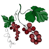 Wektor Jagoda winogronowa zdrowe jedzenie. Czarno-biała grawerowana sztuka tuszu. Izolowany element ilustracji winogron.
