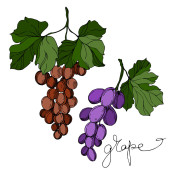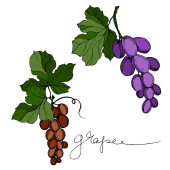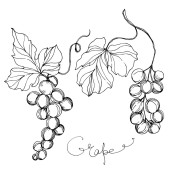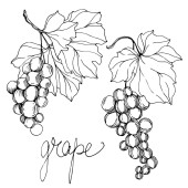 Wektor Jagoda winogronowa zdrowe jedzenie. Czarno-biała grawerowana sztuka tuszu. Izolowany element ilustracji winogron.