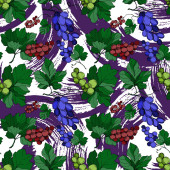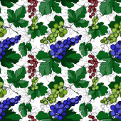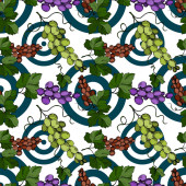 Wektor Jagoda winogronowa zdrowe jedzenie. Czarno-biała grawerowana sztuka tuszu. Płynny wzór tła.