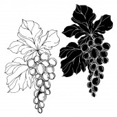 Wektor Jagoda winogronowa zdrowe jedzenie. Czarno-biała grawerowana sztuka tuszu. Izolowany element ilustracji winogron.