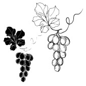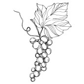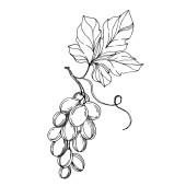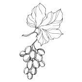 Wektor Jagoda winogronowa zdrowe jedzenie. Czarno-biała grawerowana sztuka tuszu. Izolowany element ilustracji winogron.