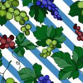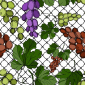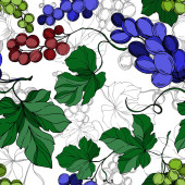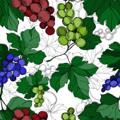 Wektor Jagoda winogronowa zdrowe jedzenie. Czarno-biała grawerowana sztuka tuszu. Płynny wzór tła.