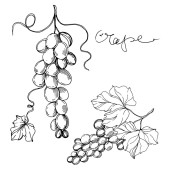 Wektor Jagoda winogronowa zdrowe jedzenie. Czarno-biała grawerowana sztuka tuszu. Izolowany element ilustracji winogron.