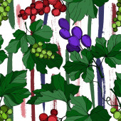 Wektor Jagoda winogronowa zdrowe jedzenie. Czarno-biała grawerowana sztuka tuszu. Płynny wzór tła.