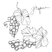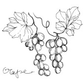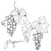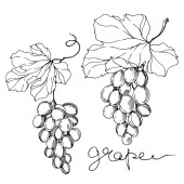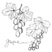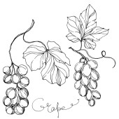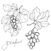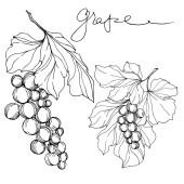 Wektor Jagoda winogronowa zdrowe jedzenie. Czarno-biała grawerowana sztuka tuszu. Izolowany element ilustracji winogron.