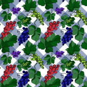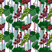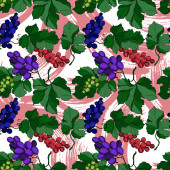 Wektor Jagoda winogronowa zdrowe jedzenie. Czarno-biała grawerowana sztuka tuszu. Płynny wzór tła.