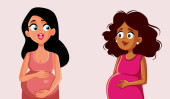 Ciężarna młoda kobieta. Wynik przed i po leczeniu. Szczęście macierzyństwa.Płaski wektor odizolowana ilustracja