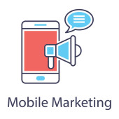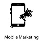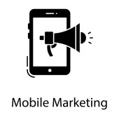 Promocja aplikacji cyfrowych, ikona marketingu mobilnego w solidnym designie