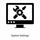 Naprawa laptopa, ikona konfiguracji systemu w linii projektowania