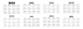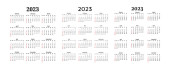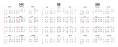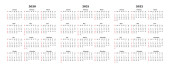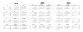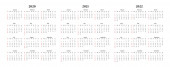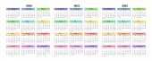 Kalendarze na lata 2020, 2021 i 2022 izolowane na białym tle