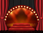 Zdjęcie "Pusta scena ze sceną podium i czarną kurtyną" może być wykorzystywane do celów osobistych i komercyjnych zgodnie z warunkami zakupionej licencji Royalty-free. Obraz jest dostępny do pobrania w jakości wysokiej rozdzielczości do 5760x3840.