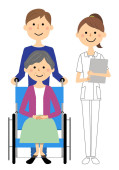 Pielęgniarki i pacjenci na wózkach inwalidzkich/ilustracje pielęgniarek i pacjentów na wózkach inwalidzkich.