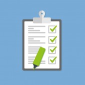Clipboard z ikoną listy kontrolnej. Ikona wektora płaskiego