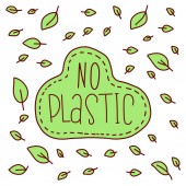 Bez plastiku, użyj toreb - ładny ręcznie rysowany plakat z literami. Pocztówka przyjazna dla środowiska