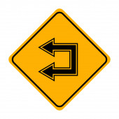 Ostrzeżenie Zachować w lewo lub zachować prawy znak drogowy, Ilustracja wektora, Izolacja na białym tle etykiety. EPS 10