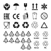 Ikony opakowań, zestaw znaków pakietu. Ilustracja wektorowa, Płaska konstrukcja.