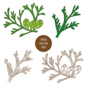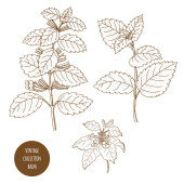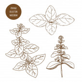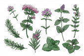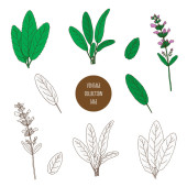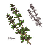 Tymianek. Wektor ręcznie rysowany zestaw ziół kosmetycznych i izolat roślin