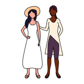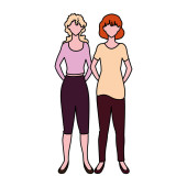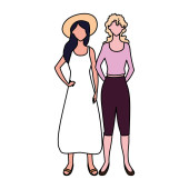 kobiety stojące z różnymi postaciami na białym tle