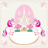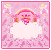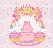 Karta urodzinowa z tortem urodzinowym, babeczkami i zamkiem