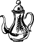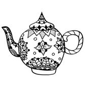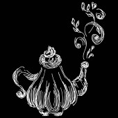Retro czajniczek ręcznie rysowane, świetny design do wszelkich celów. Czajnik ręcznie rysowane w stylu chińskim na czarnym tle. Typografia retro. Ikona czajnika. Odizolowana konstrukcja wektora