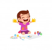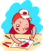 Zdjęcie "Cute szczęśliwy uśmiechnięty dziecko w białej bieliźnie rysuje się z czerwonym ołówkiem. Ilustracja wektora w stylu płaskiej kreskówki." może być wykorzystywane do celów osobistych i komercyjnych zgodnie z warunkami zakupionej licencji Royalty-free. Obraz jest dostępny do pobrania w jakości wysokiej rozdzielczości do 5760x3840.