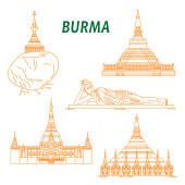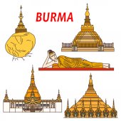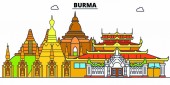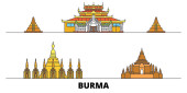 Birma City panorama odizolowany wektor ilustracji. Birma podróży czarny krajobraz miejski