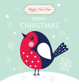 Słodki mały czerwony ptaszek, płatki śniegu, gałązka łabędzia. Bullfinch, choinka z płatkami śniegu.