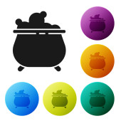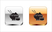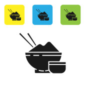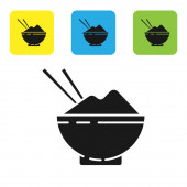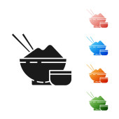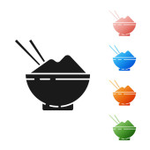 Czarny ryż w misce z ikoną pałeczki izolowane na białym tle. Tradycyjne azjatyckie jedzenie. Zestaw ikon kolorowe przyciski koła. Ilustracja wektora