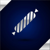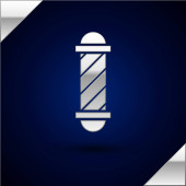Srebrna świąteczna trzcina cukrowa z ikoną pasków odizolowana na ciemnoniebieskim tle. Wesołych Świąt i szczęśliwego Nowego Roku. Ilustracja wektora