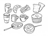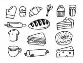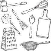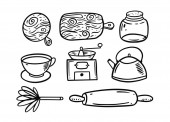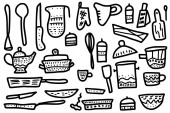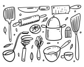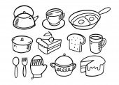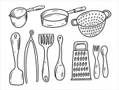 Zbiór przedmiotów kuchennych. Ręcznie rysować wektor ilustracji w stylu kreskówki. Balsam atrament.