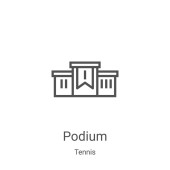 wektor ikony podium z wygranej kolekcji. Cienka linia podium zarys ilustracji wektora ikony. Symbol liniowy do stosowania w aplikacjach internetowych i mobilnych, logo, mediach drukowanych