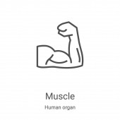 wektor ikony mięśni z kolekcji ludzkiego ciała. Cienka linia mięśni zarys ikony wektor ilustracji. Symbol liniowy do stosowania w aplikacjach internetowych i mobilnych, logo, mediach drukowanych
