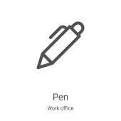 Zdjęcie "wektor ikony pióra z kolekcji biura pracy. Cienki szkic pióra zarys ilustracji wektora ikony. Symbol liniowy do stosowania w aplikacjach internetowych i mobilnych, logo, mediach drukowanych" może być wykorzystywane do celów osobistych i komercyjnych zgodnie z warunkami zakupionej licencji Royalty-free. Obraz jest dostępny do pobrania w jakości wysokiej rozdzielczości do 5760x3840.
