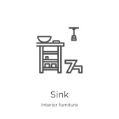 wektor zlewozmywaka z kolekcji mebli. Cienki kontur zlewozmywaka zarys ilustracji wektora ikony. Symbol liniowy do stosowania w aplikacjach internetowych i mobilnych, logo, mediach drukowanych