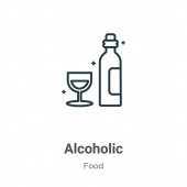 wektor alkoholu z kolekcji świątecznej. Cienki kontur alkoholu ilustruje wektor ikony. Symbol liniowy do stosowania w aplikacjach internetowych i mobilnych, logo, mediach drukowanych