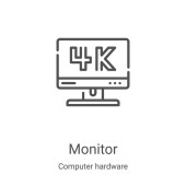 wektor ikony pulpitu z kolekcji urządzeń komputerowych. Cienki linia pulpitu zarys ikony wektor ilustracji. Symbol liniowy do stosowania w aplikacjach internetowych i mobilnych, logo, mediach drukowanych