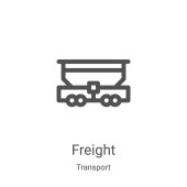 wektor ikony pociągu towarowego od odbioru ładunku dostawy. Cienki pociąg towarowy zarys ilustracji wektora ikony. Symbol liniowy do stosowania w aplikacjach internetowych i mobilnych, logo, mediach drukowanych