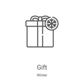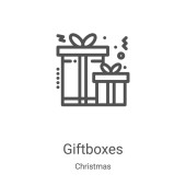 ikona prezentów wektor z kolekcji Boże Narodzenie. Cienkie prezenty zarys ilustracji wektor ikony. Symbol liniowy do stosowania w aplikacjach internetowych i mobilnych, logo, mediach drukowanych