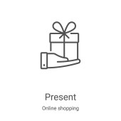 Zdjęcie "ikona prezentów wektor z kolekcji Boże Narodzenie. Cienkie prezenty zarys ilustracji wektor ikony. Symbol liniowy do stosowania w aplikacjach internetowych i mobilnych, logo, mediach drukowanych" może być wykorzystywane do celów osobistych i komercyjnych zgodnie z warunkami zakupionej licencji Royalty-free. Obraz jest dostępny do pobrania w jakości wysokiej rozdzielczości do 5760x3840.