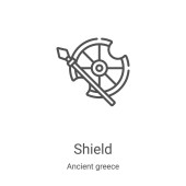 wektor tarczy z kolekcji Wikingów. Cienki kontur ekranu ilustracji wektora ikony. Symbol liniowy do stosowania w aplikacjach internetowych i mobilnych, logo, mediach drukowanych