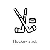 wektor ikony kija hokejowego z kolekcji hokeja. Cienka linia kij hokejowy zarys ilustracji wektor ikony. Symbol liniowy do stosowania w aplikacjach internetowych i mobilnych, logo, mediach drukowanych