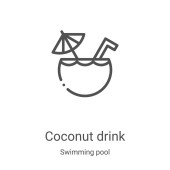 wektor ikony napoju kokosowego z kolekcji surfingowej. Cienka linia kokosowy drink zarys ikony wektor ilustracji. Symbol liniowy do stosowania w aplikacjach internetowych i mobilnych, logo, mediach drukowanych