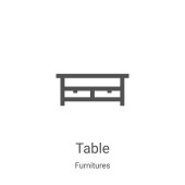 wektor ikony stołowej z kolekcji mebli. Cienki rysunek tabeli zarys ikony wektor ilustracji. Symbol liniowy do stosowania w aplikacjach internetowych i mobilnych, logo, mediach drukowanych
