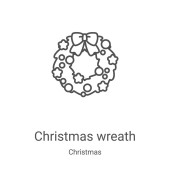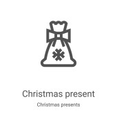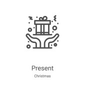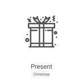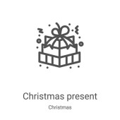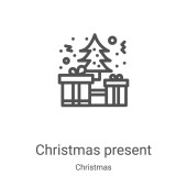 obecny wektor ikony z kolekcji Christmas. Cienka linia przedstawia ilustrację wektora ikony. Symbol liniowy do stosowania w aplikacjach internetowych i mobilnych, logo, mediach drukowanych