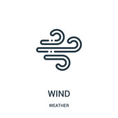wektor wiatru z kolekcji surfingowej. Cienki zarys wiatru ilustracja wektora ikony. Symbol liniowy do stosowania w aplikacjach internetowych i mobilnych, logo, mediach drukowanych
