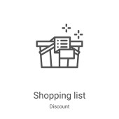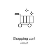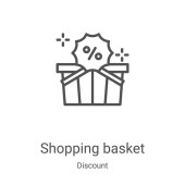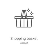 wektor koszyka zakupów z kolekcji rabatowej. Cienka linia koszyka zakupów zarys ikony wektor ilustracji. Symbol liniowy do stosowania w aplikacjach internetowych i mobilnych, logo, mediach drukowanych