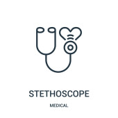 Wektor stetoskopu z kolekcji charytatywnej. Cienki stetoskop zarys ilustracji wektora ikony. Symbol liniowy do stosowania w aplikacjach internetowych i mobilnych, logo, mediach drukowanych